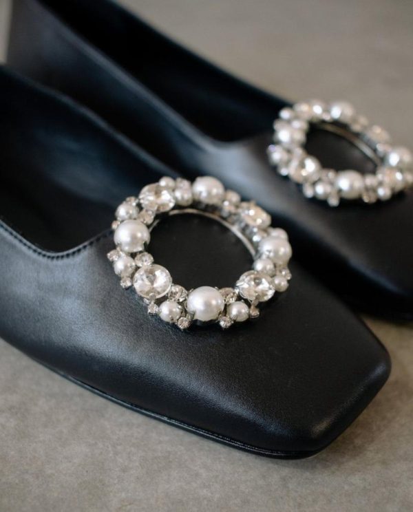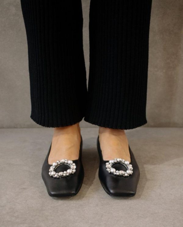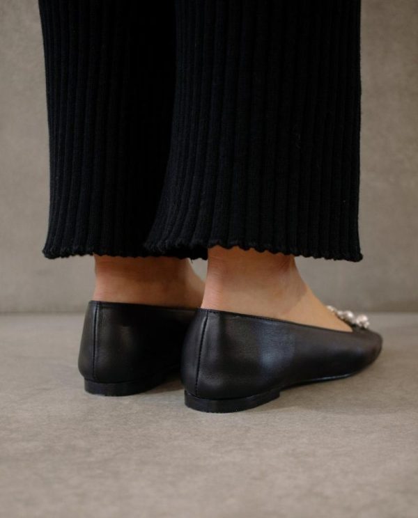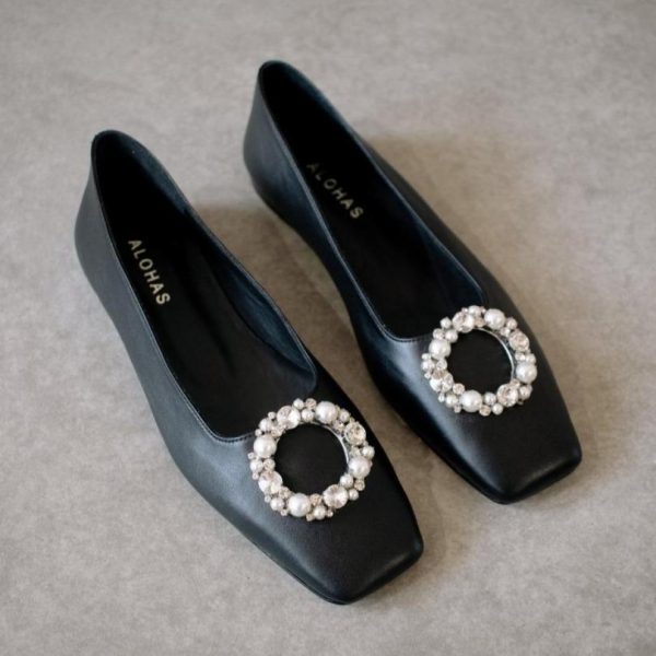 Women Ballet Flats | ALOHAS Bella Crystal Black Leather Flats