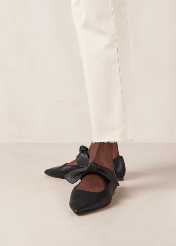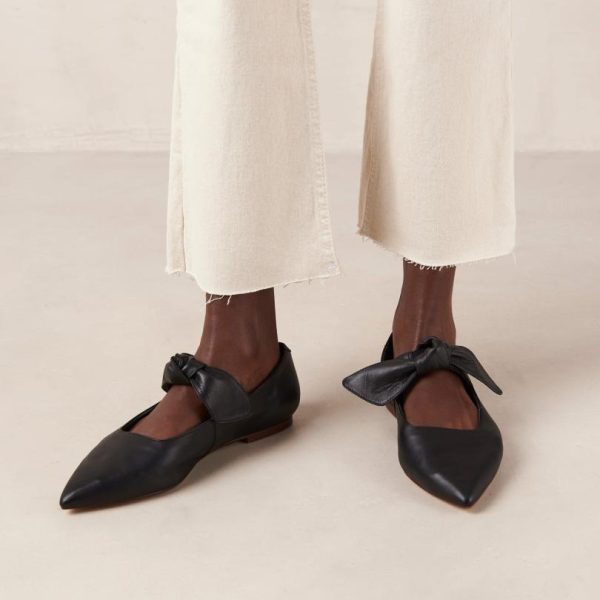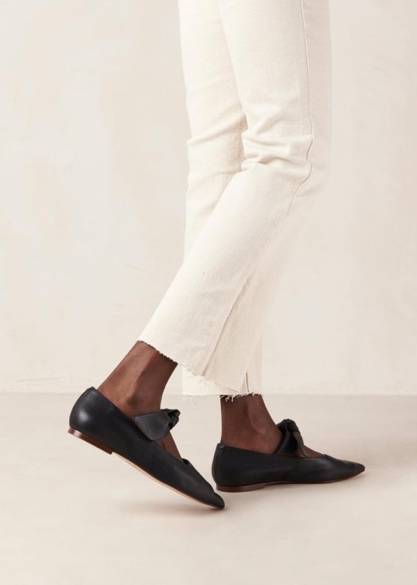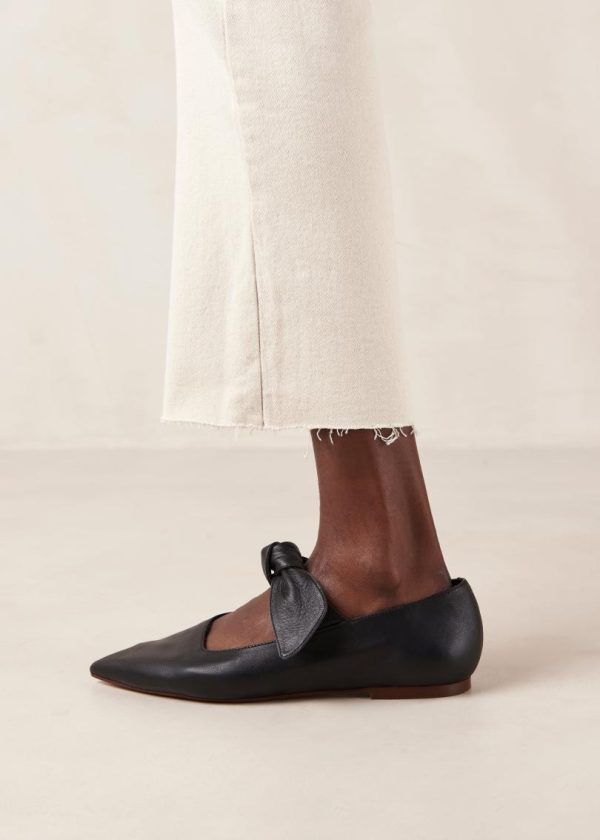 Women Ballet Flats | ALOHAS Fossil Black Leather Ballet Flats