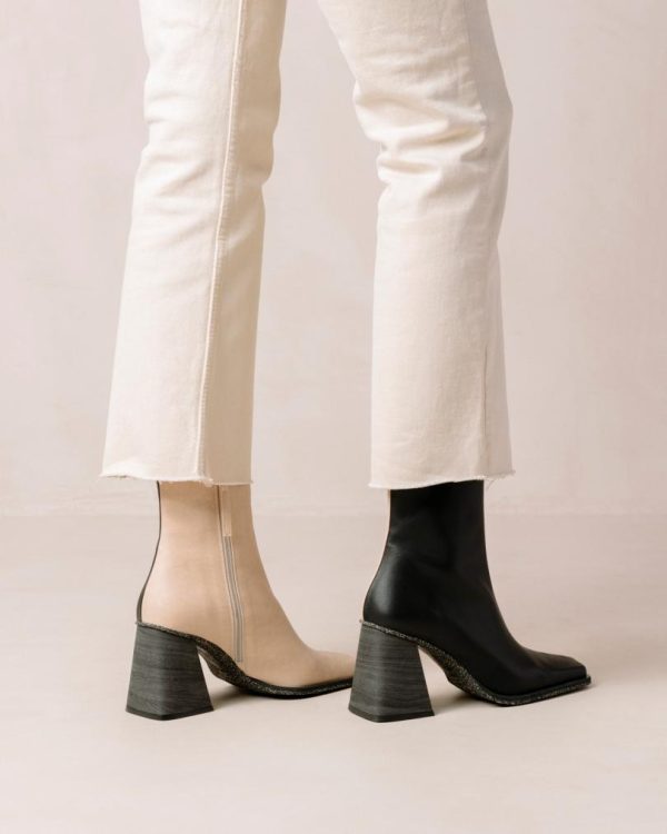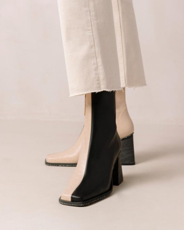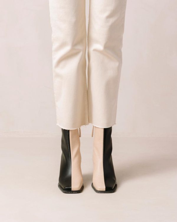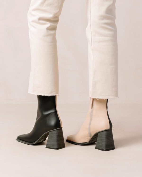 Black or beige? These one-of-a-kind, two-tone vegan ankle boots are here to solve all your style dilemmas. Crafted from plant-based leather, their fun bicolor look sets them apart from the crowd. Not to mention their sassy block heel and gorgeous square toe. We guarantee that all your fashion ensembles will start and end on a pair of these!