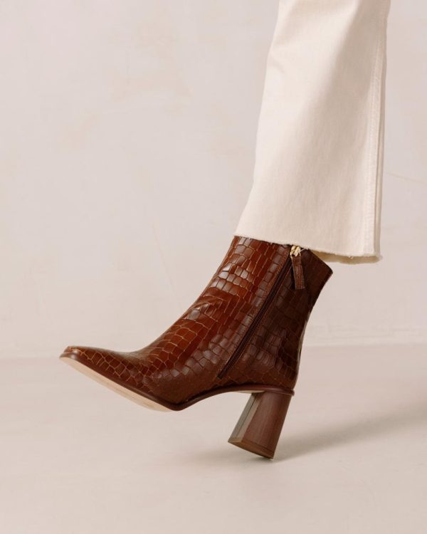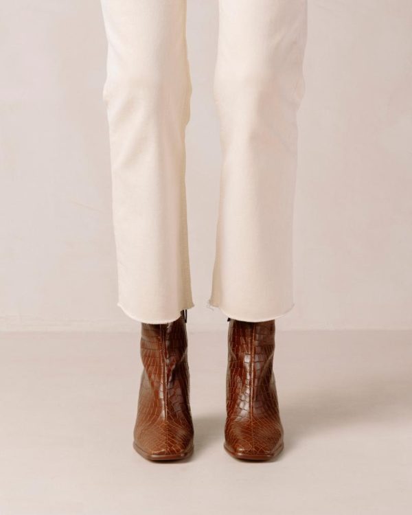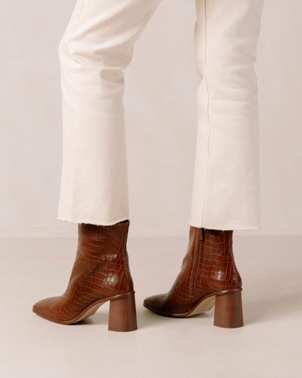 When it comes to ankle boots, the West is 100% a must. Crafted from brown croc effect leather and set atop a comfortable block heel, their sleek, slim-line silhouette pairs well with all your fall favorites and summer staples alike. The perfect all year round shoe you’ll want to wear over and over (and over) again.