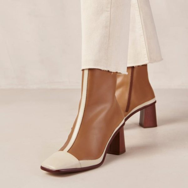 Women Boots | ALOHAS West Retro Brown And Cream Leather Boots