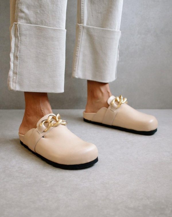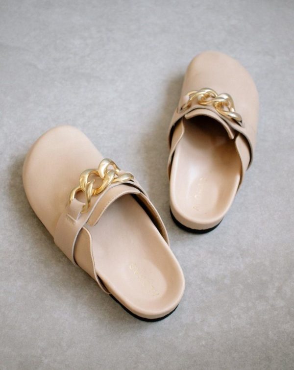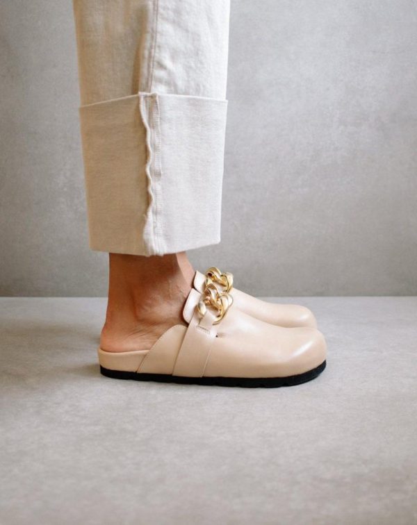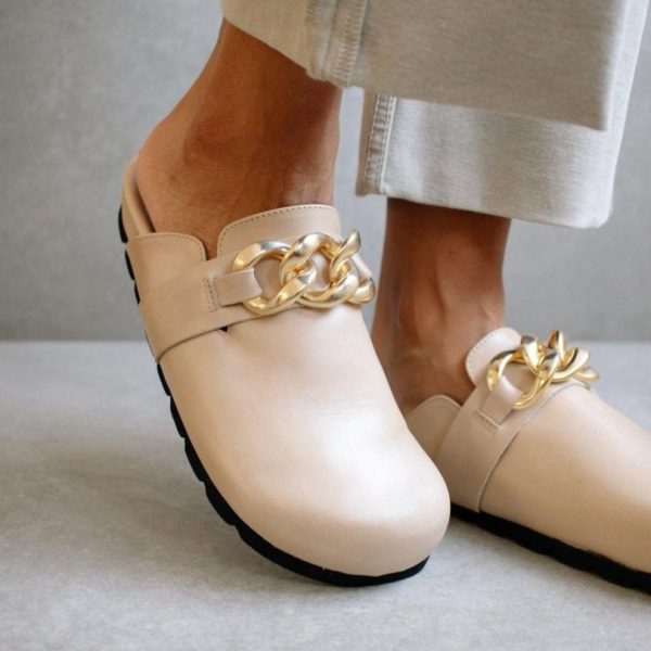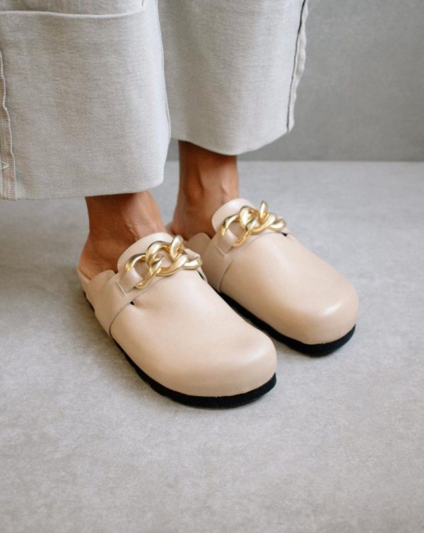 Women Clogs | ALOHAS Fireplace Chain Beige Leather Clogs