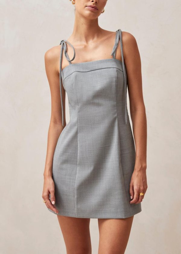 Caroline is a mini dress cut with a structured bodice for a semi-fitted silhouette. Made from wool-blend fabric, it has adjustable tie straps and a straight neckline. Wear it solo on when it’s warm or layer with the matching Anna blazer for transitioning into fall.