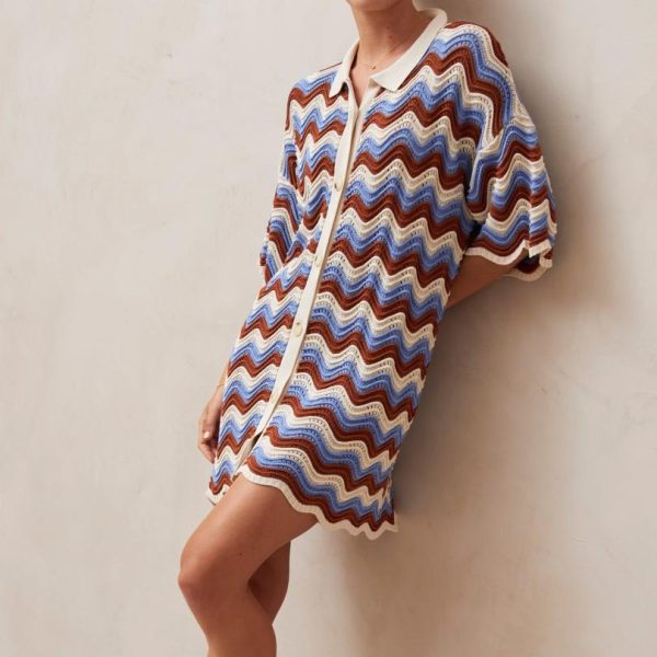 Women Dresses | ALOHAS Palermo Blue & Brown Multicolor Knit Dress
