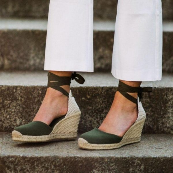 Women Espadrilles | ALOHAS Clara By Day Green Canvas Espadrilles