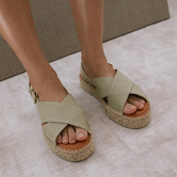 Green cotton canvas cross-strap espadrilles with platform soles