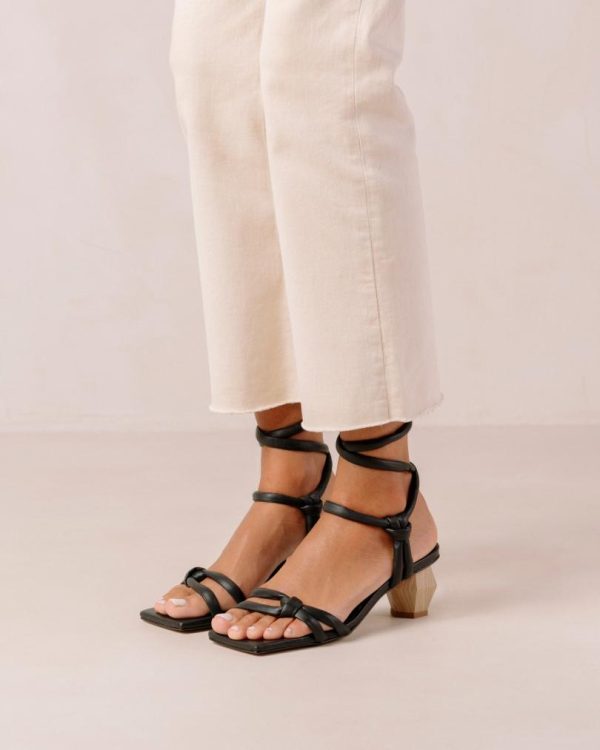 Weddings coming up? Special events in sight? These black leather strappy sandals won’t let you down. Featuring a geometric-shaped wooden heel and a modern square toe, the Creative are destined for cult status. Their minimal design features knotted wraparound ties you can play with to create your desired fit and style.