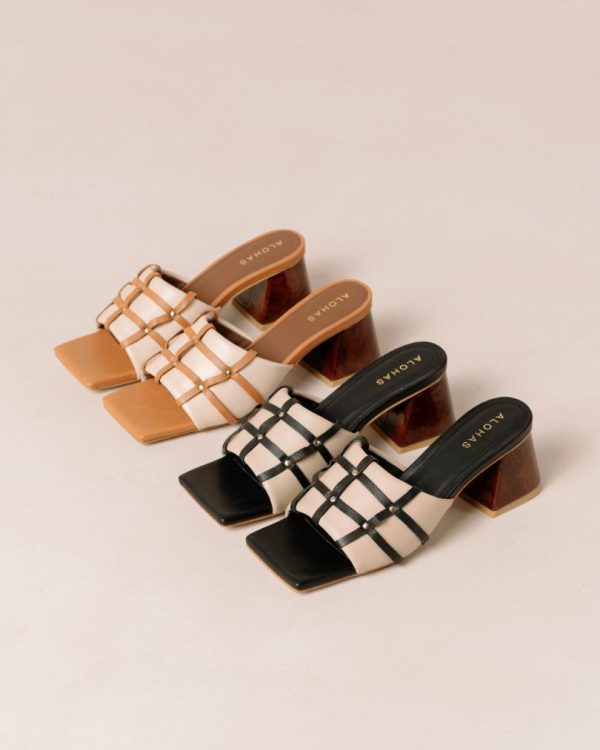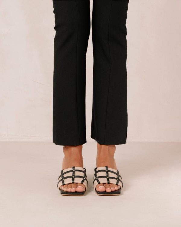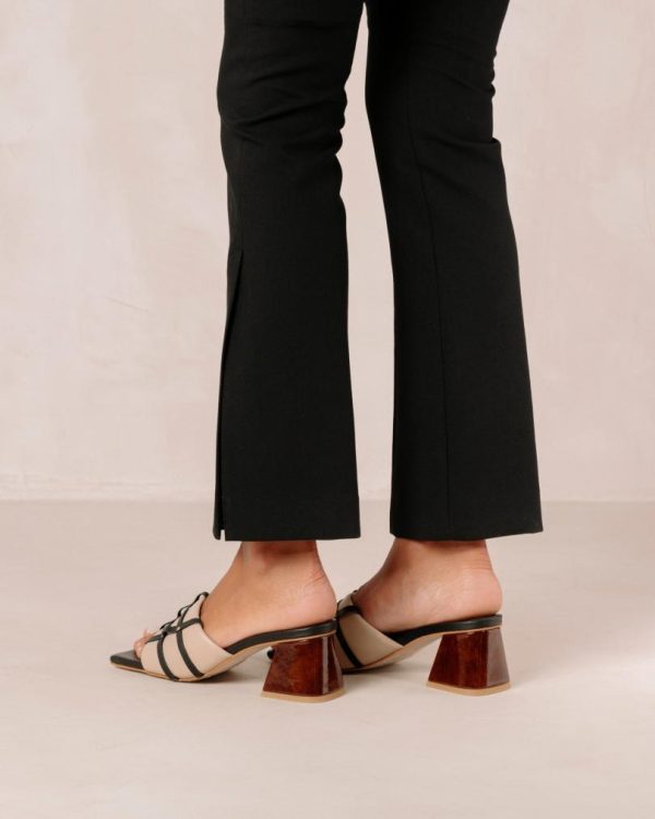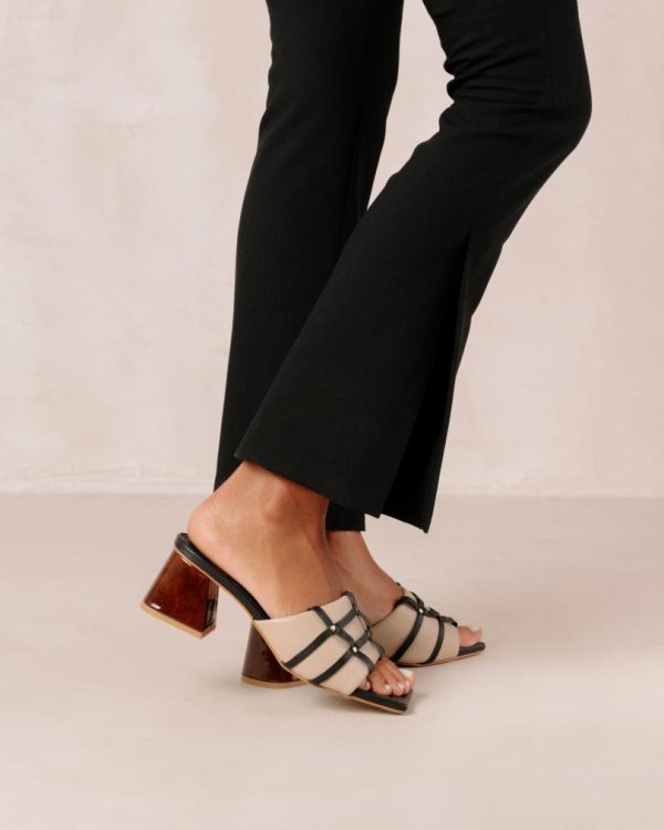 Women Mules | ALOHAS Diorite Black And Beige Leather Sandals