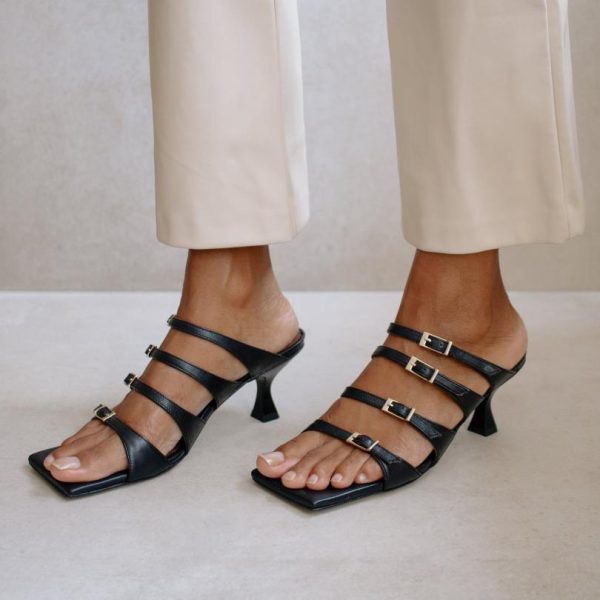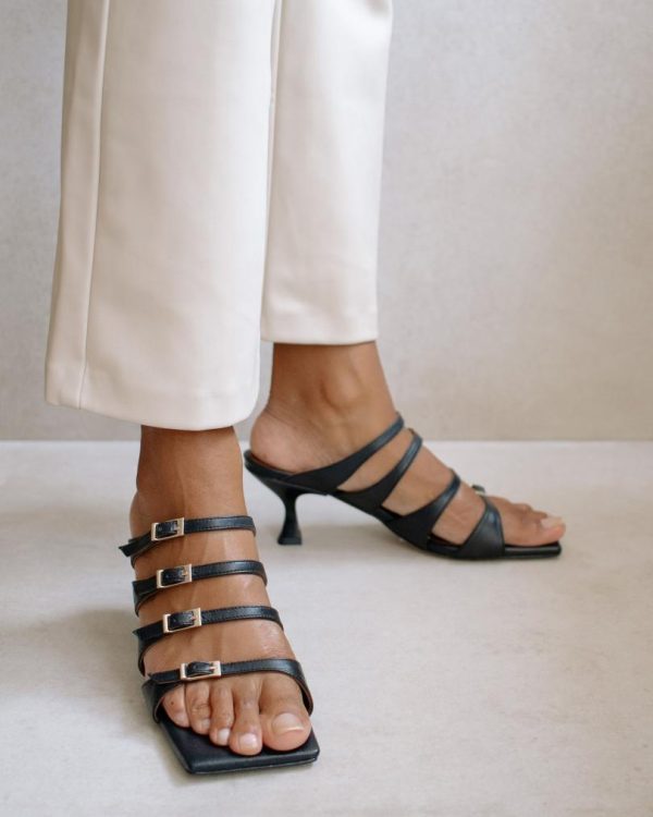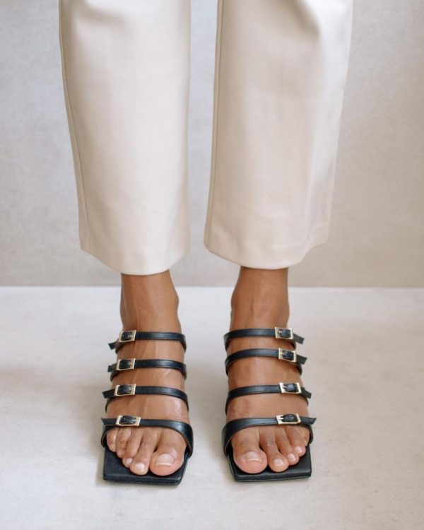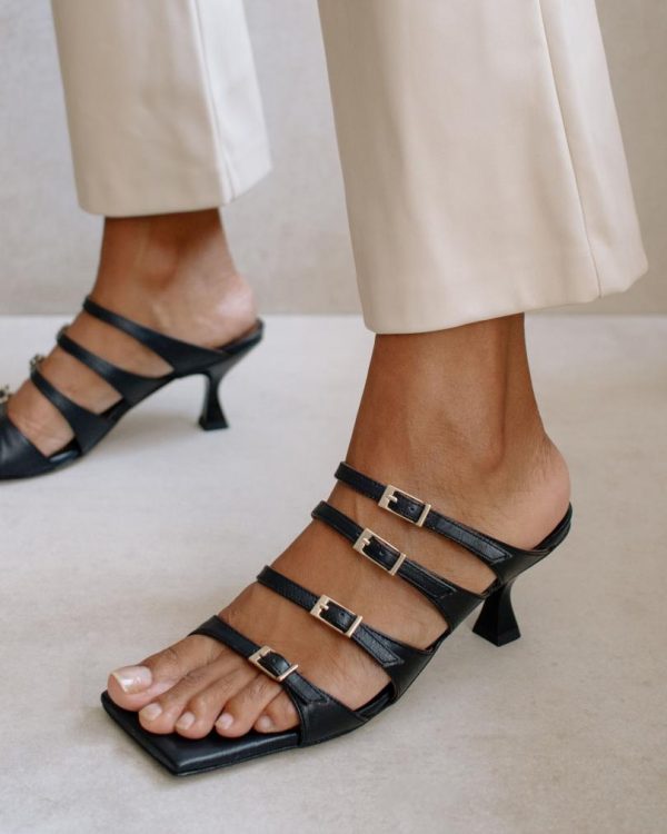 Black leather sandals with a pointed
