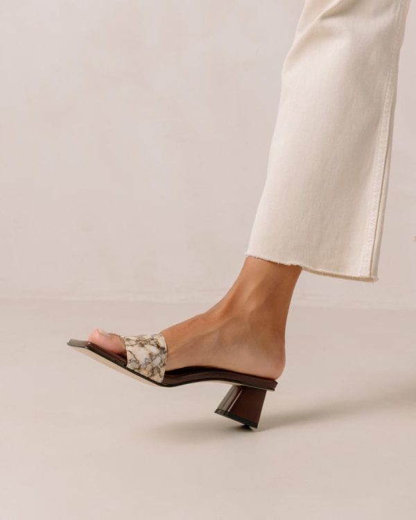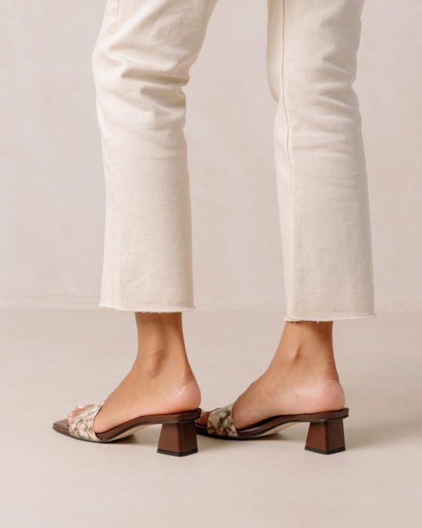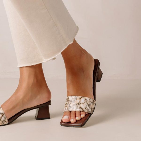 Women Mules | ALOHAS Squared Kalon Brown Vegan Leather Sandals