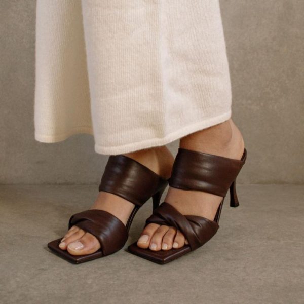 Women Mules | ALOHAS Twist Strap Dark Brown Leather Mules