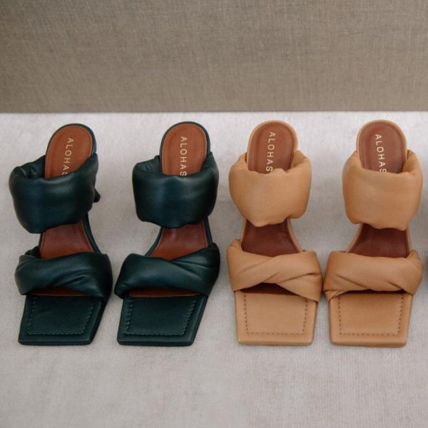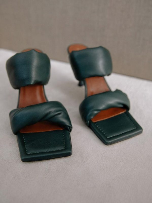 Step up your shoe game with these trendy green leather mules. The twist strap design adds a unique touch to any outfit, while the comfortable sole ensures all-day wear. in spite of the high-heel Elevate your style with these versatile and chic mules.