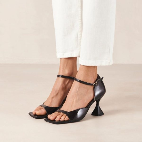 Chic in a pinch. The Beijos is a smart ankle strap sandal with a squared toe and cut-out vamps. Crafted from black leather, it sits on flared mid-heels which offer comfort, stability, and support on every terrain.