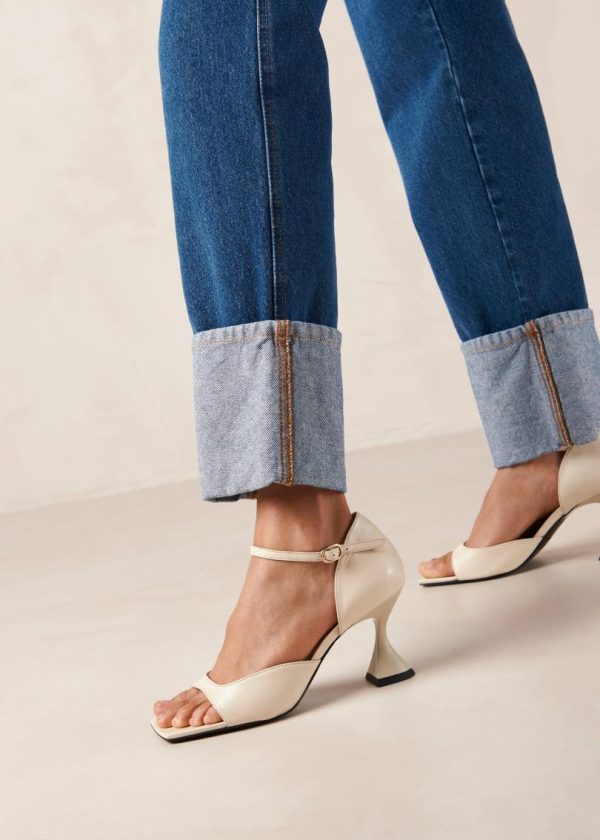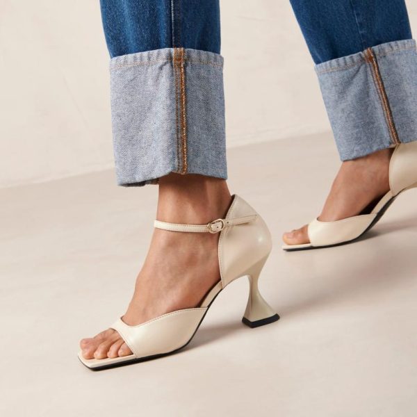 Chic in a pinch. The Beijos is a smart ankle strap sandal with a squared toe and cut-out vamps. Crafted from cream leather, it sits on flared mid-heels which offer comfort, stability, and support on every terrain.