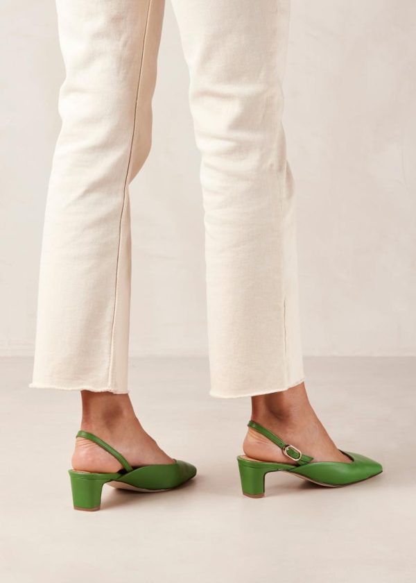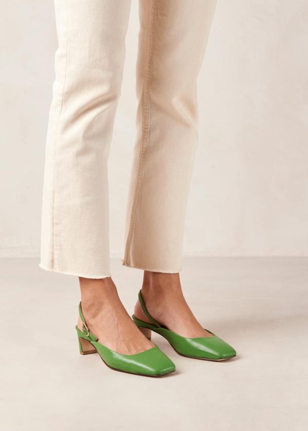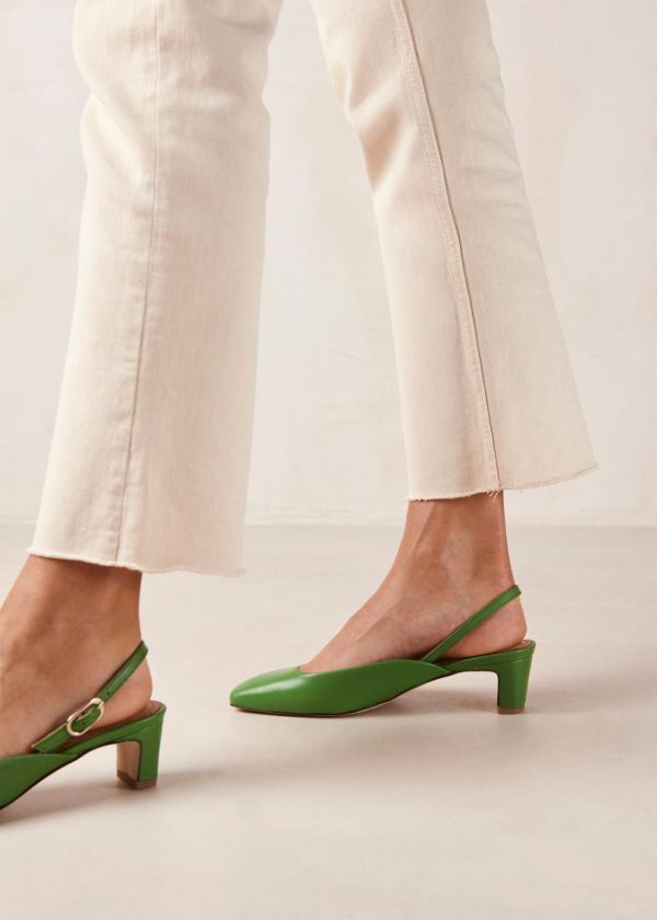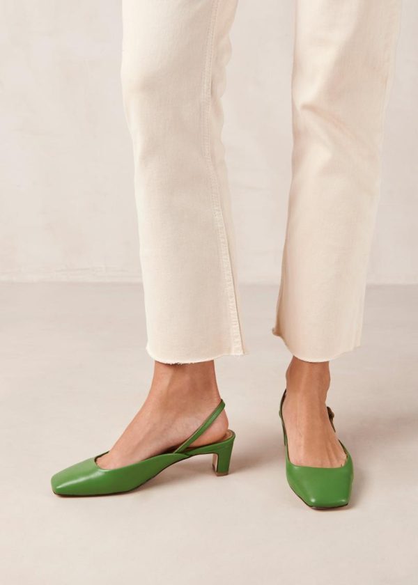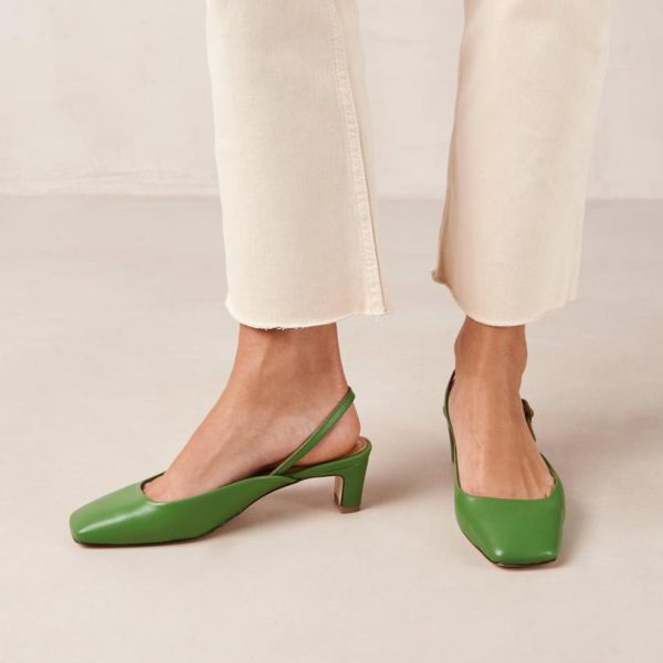 Short and sweet. The Lindy low-heel pumps are made from bright green leather with elegant square-toe vamps and slingback straps. Wear them casually to the office, or as an alternative to party footwear if a sky-high stiletto isn’t your thing.