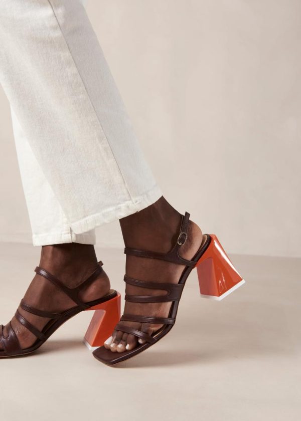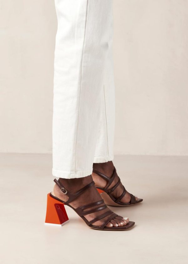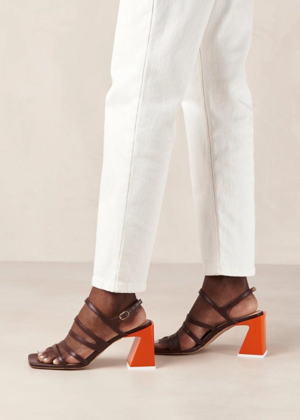 Women Sandals | ALOHAS Aubrey Brown And Orange Leather Sandals