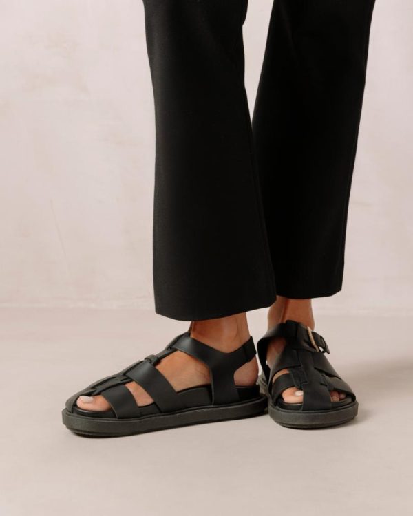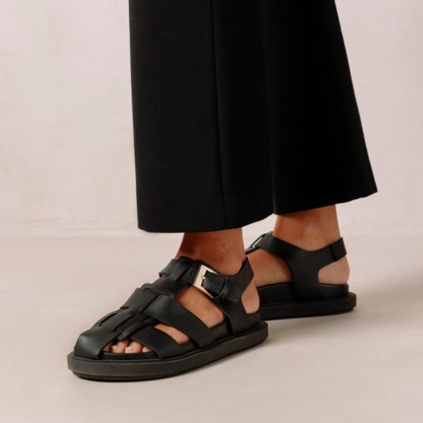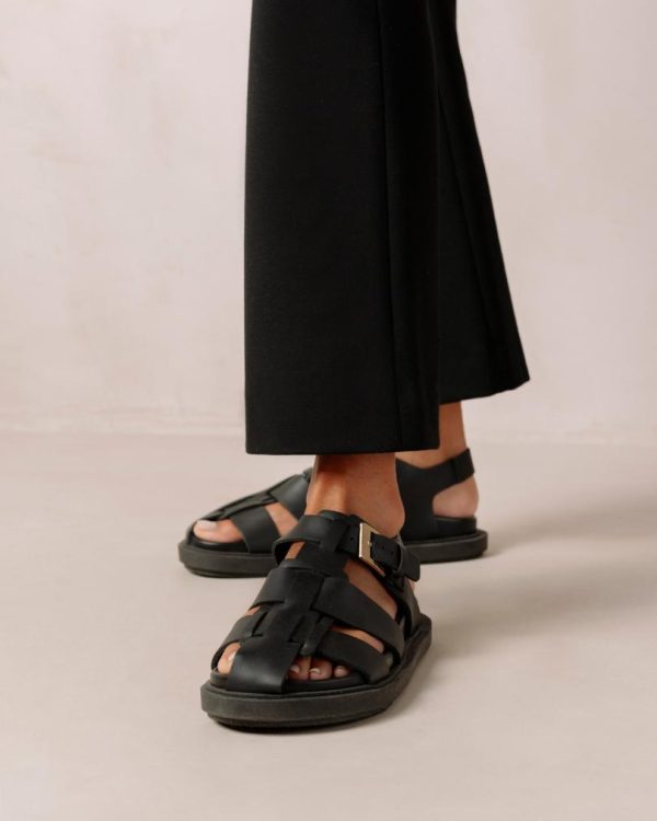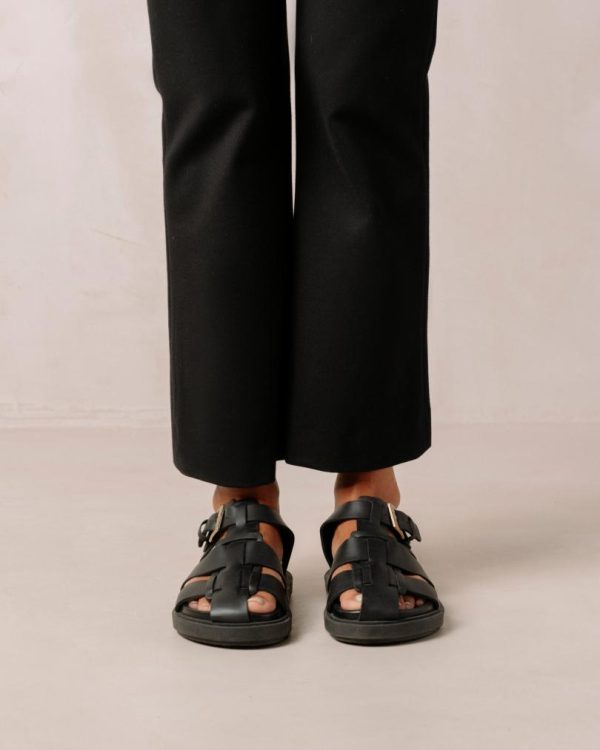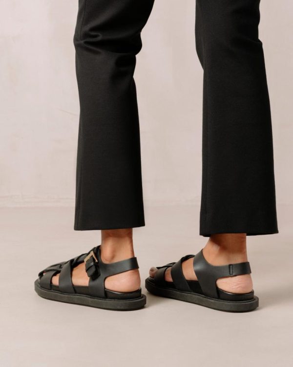 Women Sandals | ALOHAS Backbone Black Leather Sandals