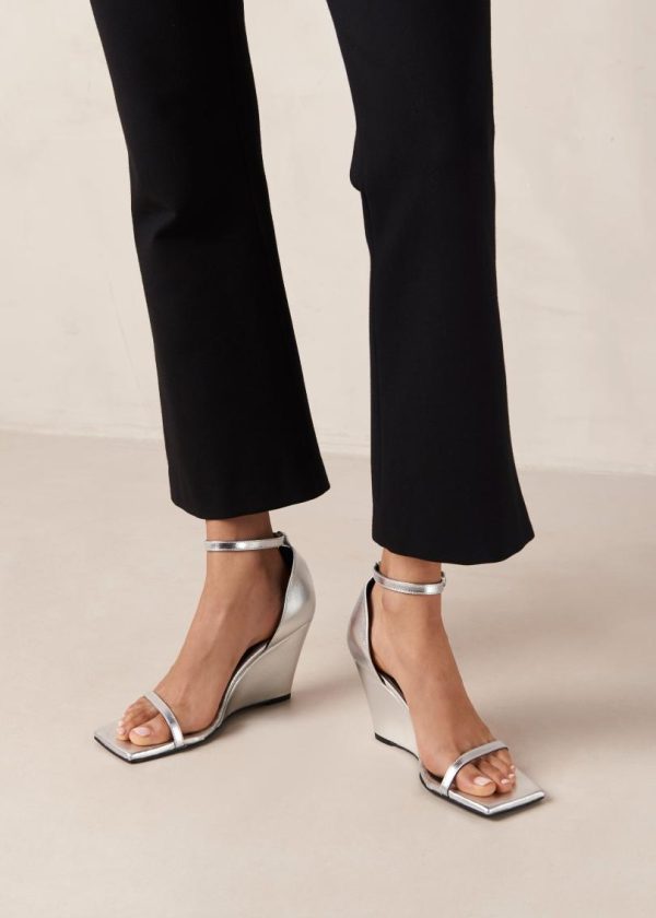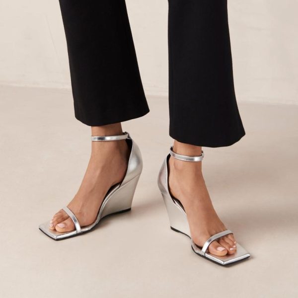 Need a lift? The Gata is a squared-toe sandal with a hefty wedge heel and adjustable ankle straps. Not only flattering but also comfortable, this style comes in a silver leather finish to complement your go-to look for parties, drinks, and dancing.