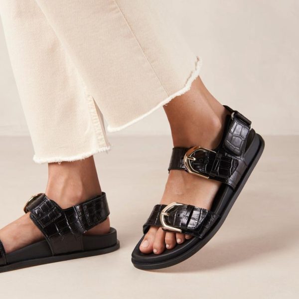 Women Sandals | ALOHAS Leone Alli Black Double-Strap Sandals