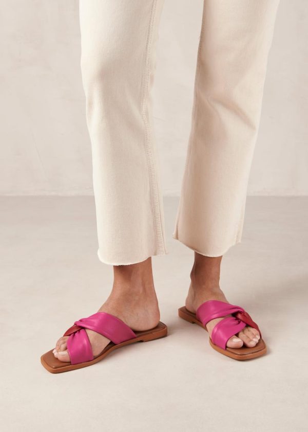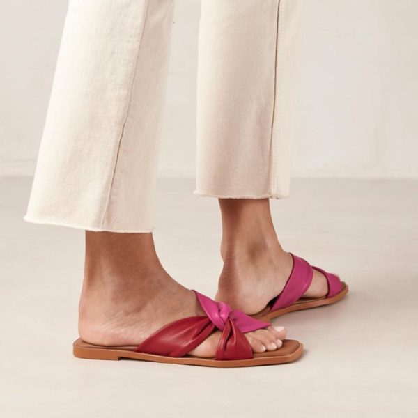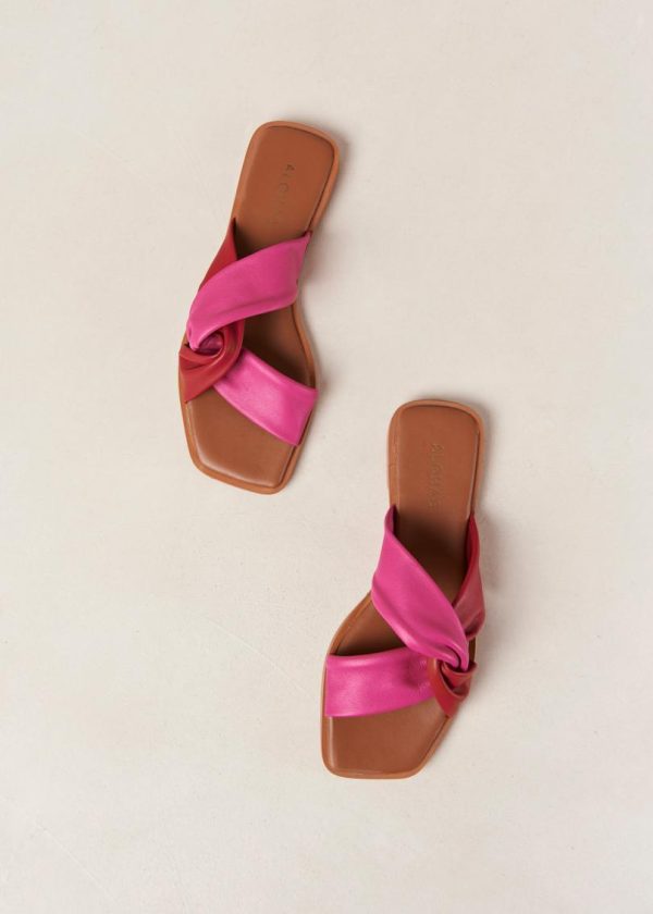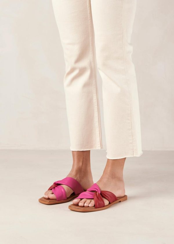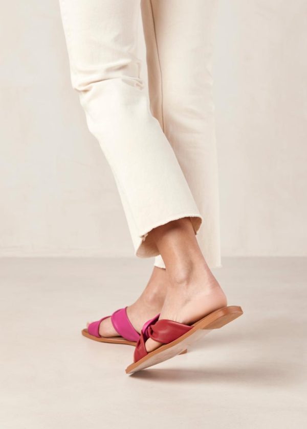 Red and pink leather flat slides