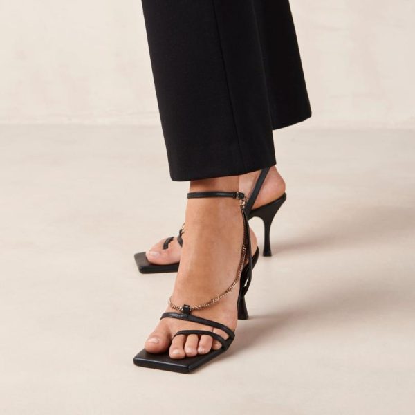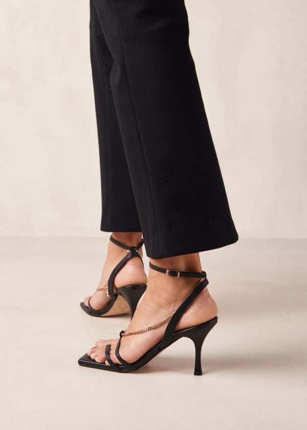 Women Sandals | ALOHAS Straps Chain Black Leather Sandals